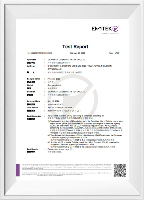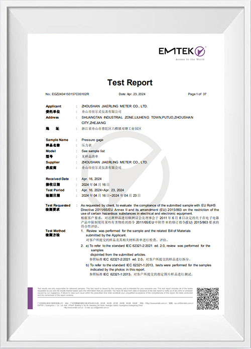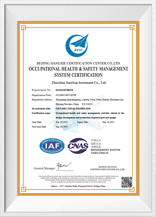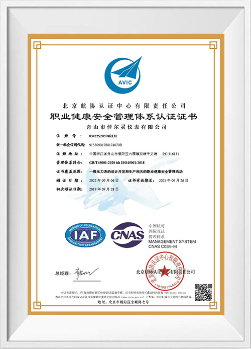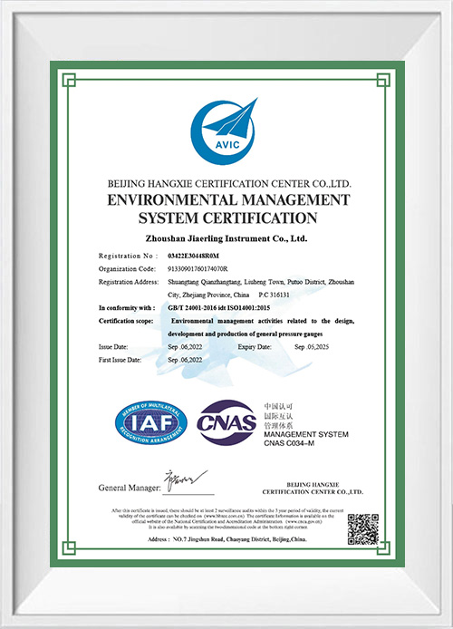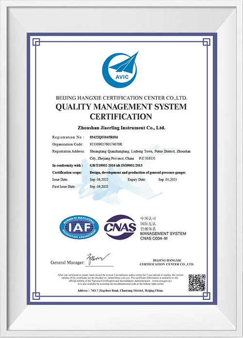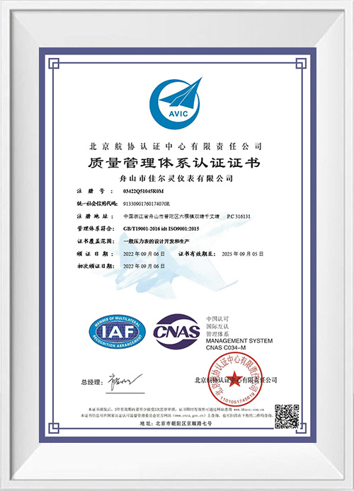 Sertifika- Zhoushan Jiaerling Meter Co., Ltd.