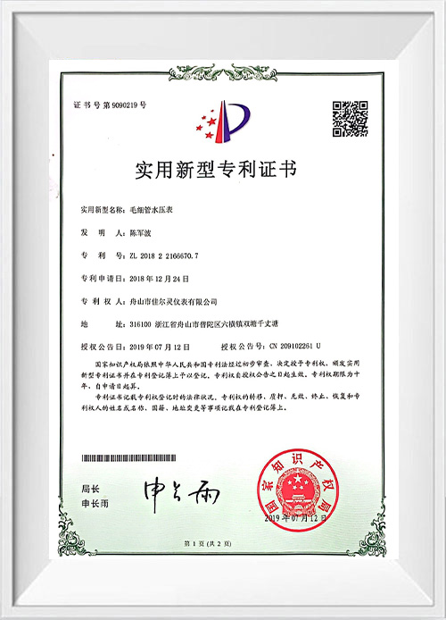 Sertifika- Zhoushan Jiaerling Meter Co., Ltd.